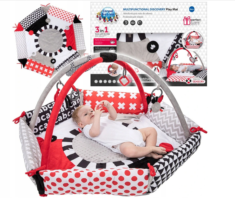 Kontrastowa mata edukacyjna SENSORY TOYS posiada elementy interaktywne, które zajmą dziecko na długi czas. Mata w kontrastowych kolorach jest idealna dla dziecka już od pierwszych chwil, ponieważ dziecko na początku widzi tylko kontrasty.