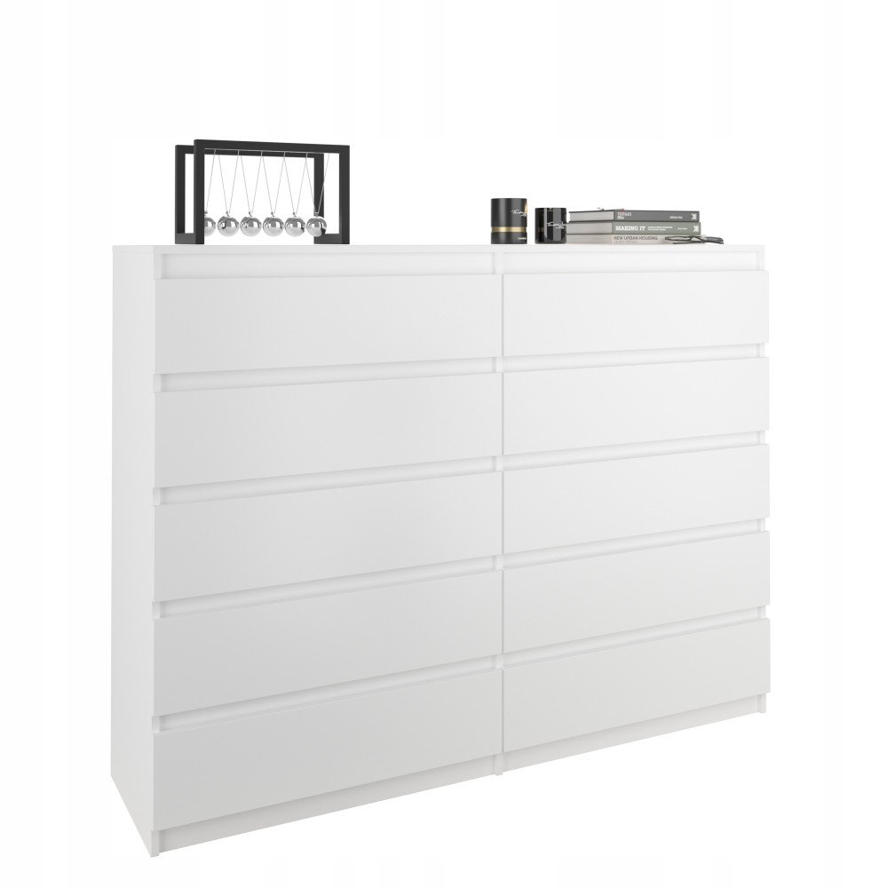 Cassettiera moderna 140 cm, mobile con 10 cassetti, bianco PL
