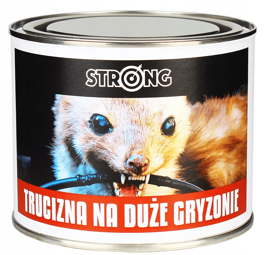 STRONG TRUCIZNA NA DUŻE GRYZONIE to silny preparat gryzoniobójczy skuteczny przeciw trudnym do zwalczania gryzoniom. Preparat dzięki smakowitym składnikom mieszkanki jest wykrywany przez szkodniki nawet ze znacznej odległości, a dzięki zawartości sprawdzonej substancji czynnej - BRODIFACOUM - jest w 100% śmiertelny już po jednorazowym spożyciu.