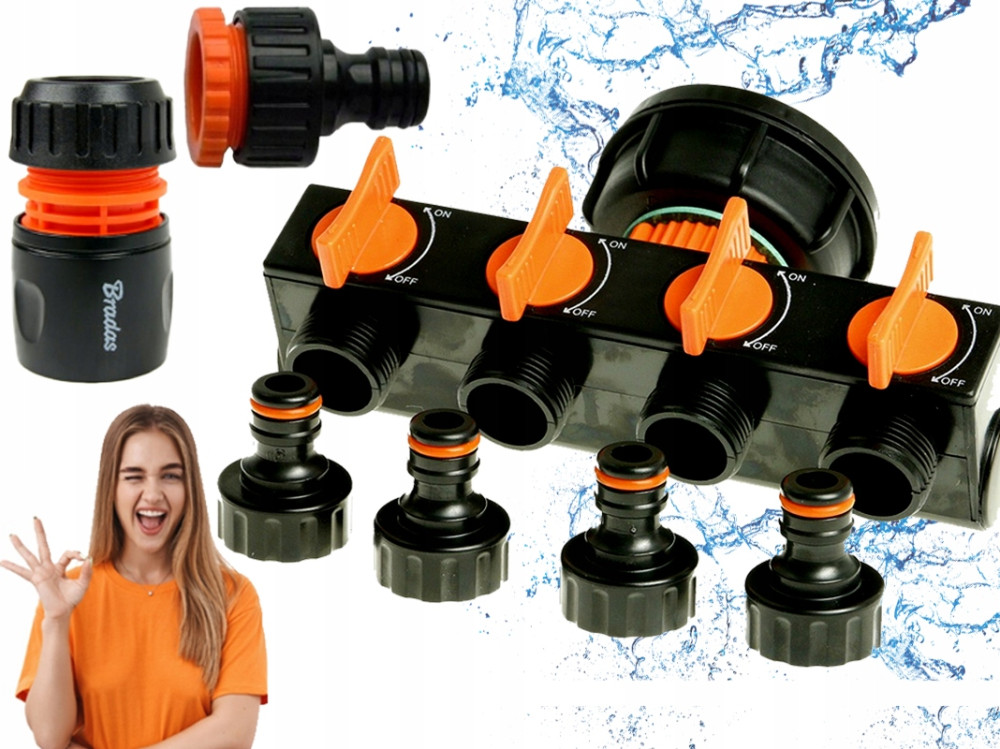 2. Czwórnik z przyłączami do węża ogrodowego o średnicy 3/4" lub 1/2"- 1 szt