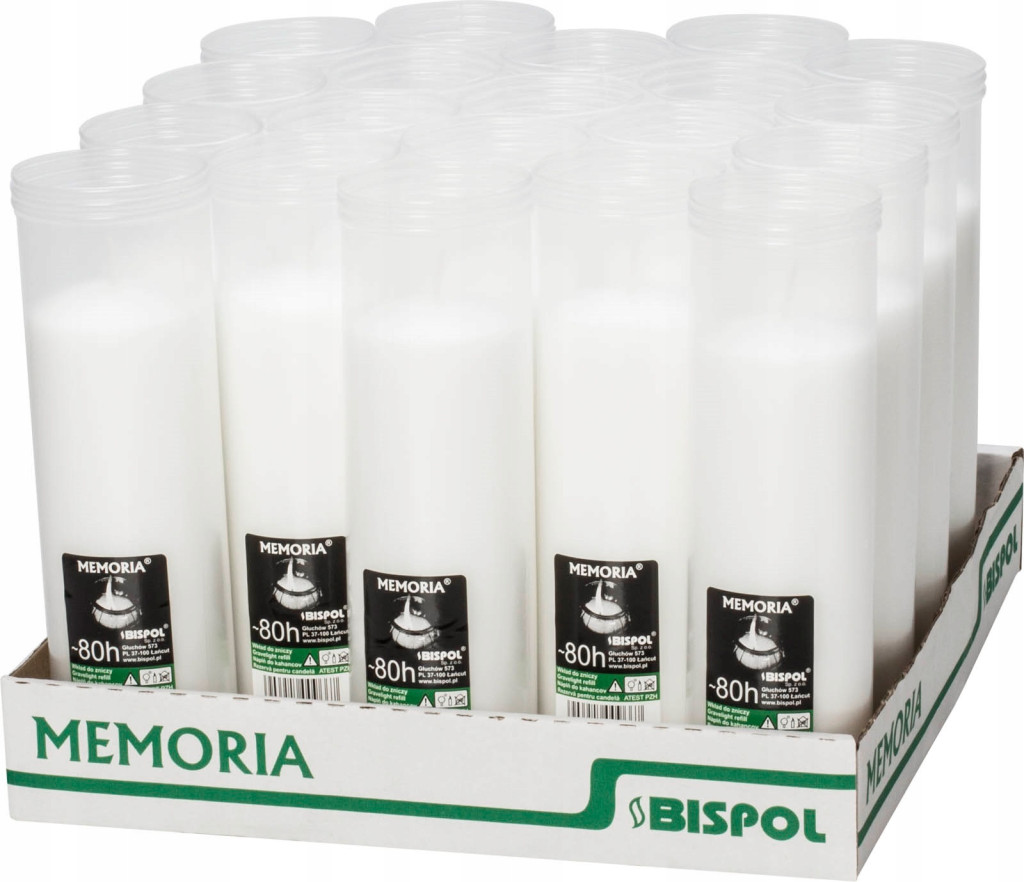 Bispol Memoria wkłady parafinowe do zniczy 80 godzin palenia opakowanie 20 sztuk