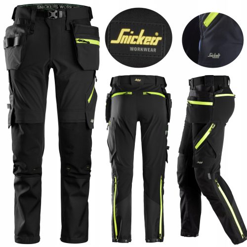 Spodnie robocze Snickers 6940 Stretch FlexiWork+ z workami kieszeniowymi wykonane zostały z 4 kierunkowego rozciągliwego materiału Softshell Schoeller®. Model ten jest niezwykle rozciągliwy, lekki oraz wytrzymały. Spodnie wyposażone są w zasuwane kieszenie tylne oraz worki kieszeniowe wzmacniane materiałem Kevlar® wewnątrz oraz elastyczną kieszeń cargo. Model ten dodatkowo posiada system pozycjonowanie nakolanników KneeGuard™ z elastycznej tkaniny z dodatkiem włókien Kevlar®, dzięki czemu nakolanniki nie będą się przesuwać i będą zawsze w tym samym miejscu.