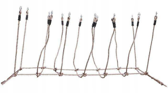 Entuzjastyczna wspinaczka na moście od Small Foot z mocnych plastikowych linek rozwija poczucie równowagi. Obowiązkowy element wyposażenia każdego przydomowego placu zabaw. Posiada czternaście metalowych oczek, które służą do zamocowania, a na poprzecznych linkach można bezpiecznie stąpać. Wspaniała alternatywa na deszczowe i zimnie dni, ponieważ most można zamontować w pokoju dziecka.