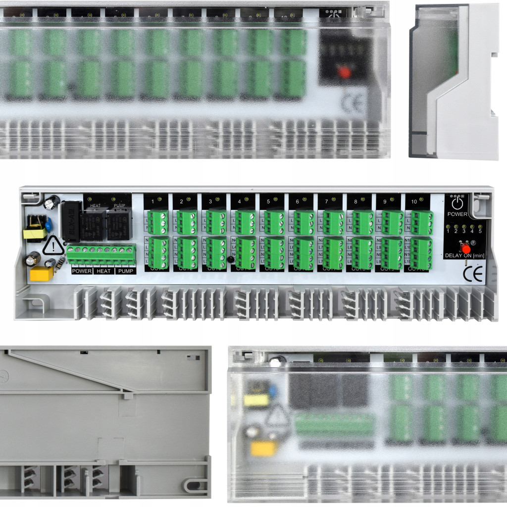 Listwa może obsłużyć do 10 obwodów i do 10 termostatów pokojowych. Dla każdego obwodu jest sygnalizacja stanu wyjścia, wysokiej jakości złącza gwarantują pewny styk i komfortowe podłączenie przewodów.
