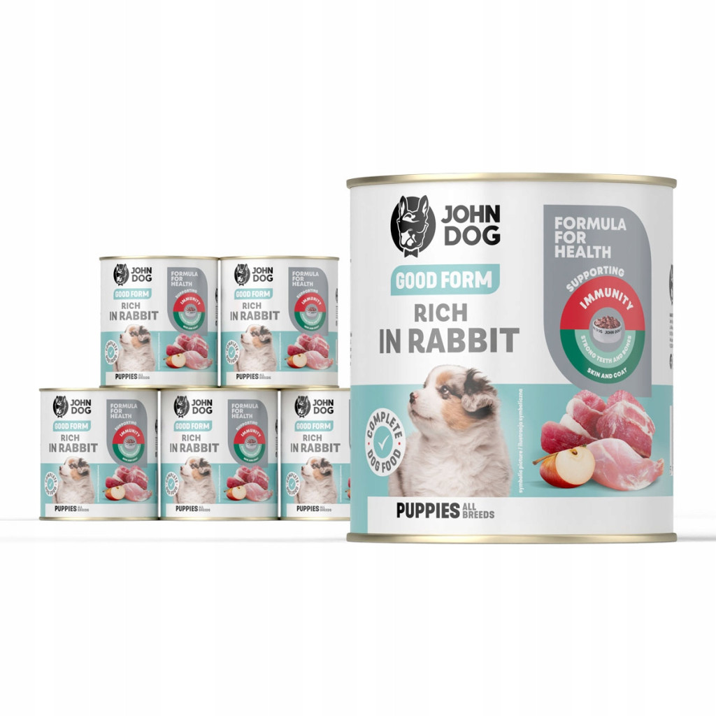 Pełnoporcjowa karma dla szczeniąt wszystkich ras, nie zawierająca glutenu. Karma mokra z linii Good Form bogata w królika.