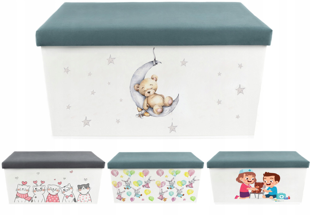 Skrzynia na zabawki kufer pojemnik pościel kosz siedzisko kolory wzory pufa