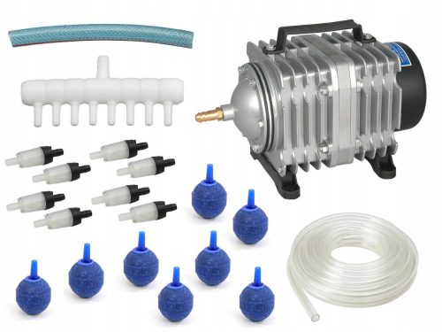 Elektromagnetyczne pompy powietrza serii ACO marki RESUN to bardzo wydajne kompresory do napowietrzania oczek wodnych, dużych zbiorników akwariowych, jak również do użytku w hodowlach zwierząt wodnych. Tlen potrzebny jest w każdym zbiorniku wodnym. W oczkach wodnych latem w czasie upałów pompa dostarcza tlen rybom, a zimą zapobiega śnięciu ryb pod lodem, tworząc niezamarzającą przerębel. Również filtracja biologiczna stawu uzależniona jest od dobrego natlenienia wody. Moc i wydajność pompy należy dobrać w zależności od wielkości stawu oraz ilości ryb.