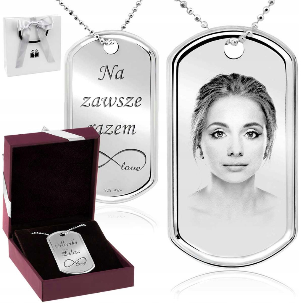 • Usługę grawerowania po obu stronach nieśmiertelnika (zdjęcia, grafika, tekst)
