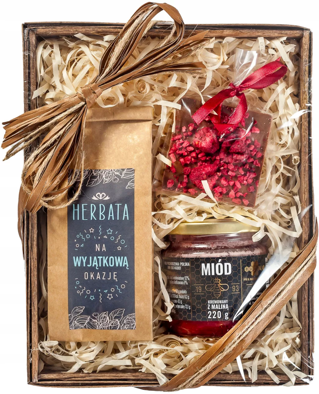 Zestaw na prezent, który oferujemy idealnie sprawdzi się na każdą okazję. Jest to świetny pomysł - oryginalny i zawsze trafiony! Zawartość opakowana jest w wysoko przeźroczystą folię celofanową. Całość dopełnia gustowna wstążka nadająca całemu zestawowi uroku oraz wyjątkowego wyglądu. Koszyk wypełniony jest estetyczną wełną drzewną. Produkty spożywcze znajdujące się wewnątrz zestawu są świeże i posiadają wyjątkowy smak, dzięki czemu ten upominek zostanie zapamiętany przez obdarowaną osobę na bardzo długo.