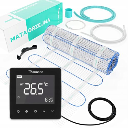 Jest to mata nowej generacji, a jej doskonałe właściwości wynikają z zastosowania materiałów (teflon i poliamid), a także nowoczesnej technologii produkcji. Wysoka moc jednostkowa maty Thermeco, gwarantuje najwyższą skuteczność działania elektrycznego systemu ogrzewania podłogowego.