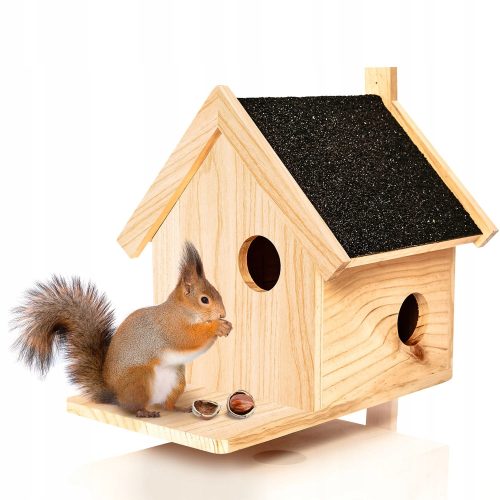 • Domek dla wiewiórek: całoroczne schronienie, karmnik i miejsce do spania dla wiewiórek