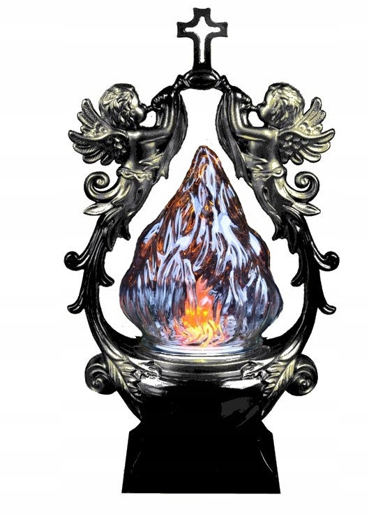 Znicz w kolorze grafitowym z grubym szkłem w kształcie płomienia, zrobione z odpornego na warunki atmosferyczne tworzywa.