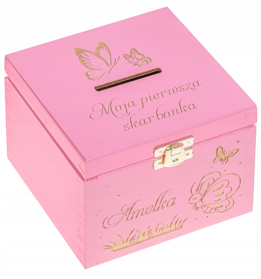 Wychodząc naprzeciw Państwa oczekiwaniom stworzyliśmy eleganckie, ręcznie wykonane pudełko z grawerem w formie skarbonki.