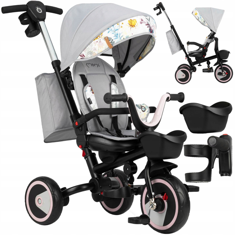Triciclo 5 in 1 - MoMi INVIDIA GRIGIO - CESTO GIREVOLE A 360°