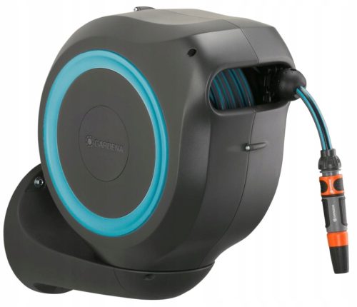Bęben naścienny wykonany jest z wysokiej jakości materiałów, zapewniających mu ochronę przed promieniowaniem UV i mrozem, co umożliwia użytkowanie go przez cały rok. Dzięki zabezpieczeniu przed kradzieżą, bęben zdemontować ze ściany może tylko jego właściciel. W zestawie z bębnem znajduje się mocowanie naścienne, giętki wąż przyłączeniowy, wszystkie niezbędne elementy Original GARDENA System i części montażowe, a także zraszacz z dwiema opcjami strumienia wody.