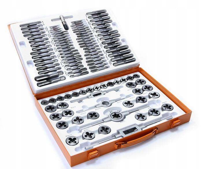 Profesjonalne gwintowniki i narzynki  wykonane z doskonałego materiału. Zestaw zawiera 110 elementów. Zapakowany jest w wygodną walizkę, która pozawala utrzymać porządek, łatwo transportować i błyskawicznie odnaleźć potrzebny w danej chwili element.