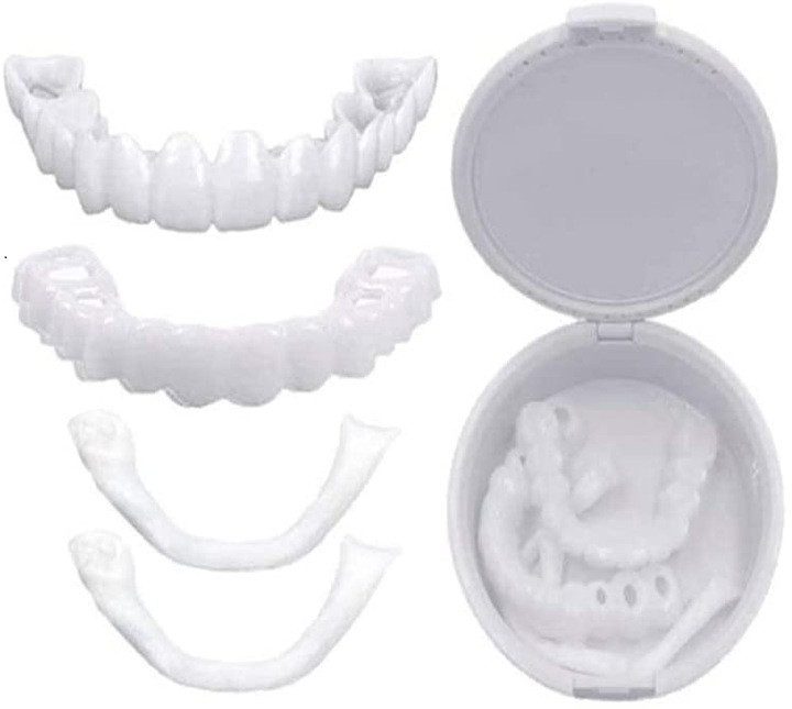 • Tymczasowa nakładka na górne i dolne żeby która pozwoli Ci w szybki i tani sposób uzupełnić braki w uzębieniu.