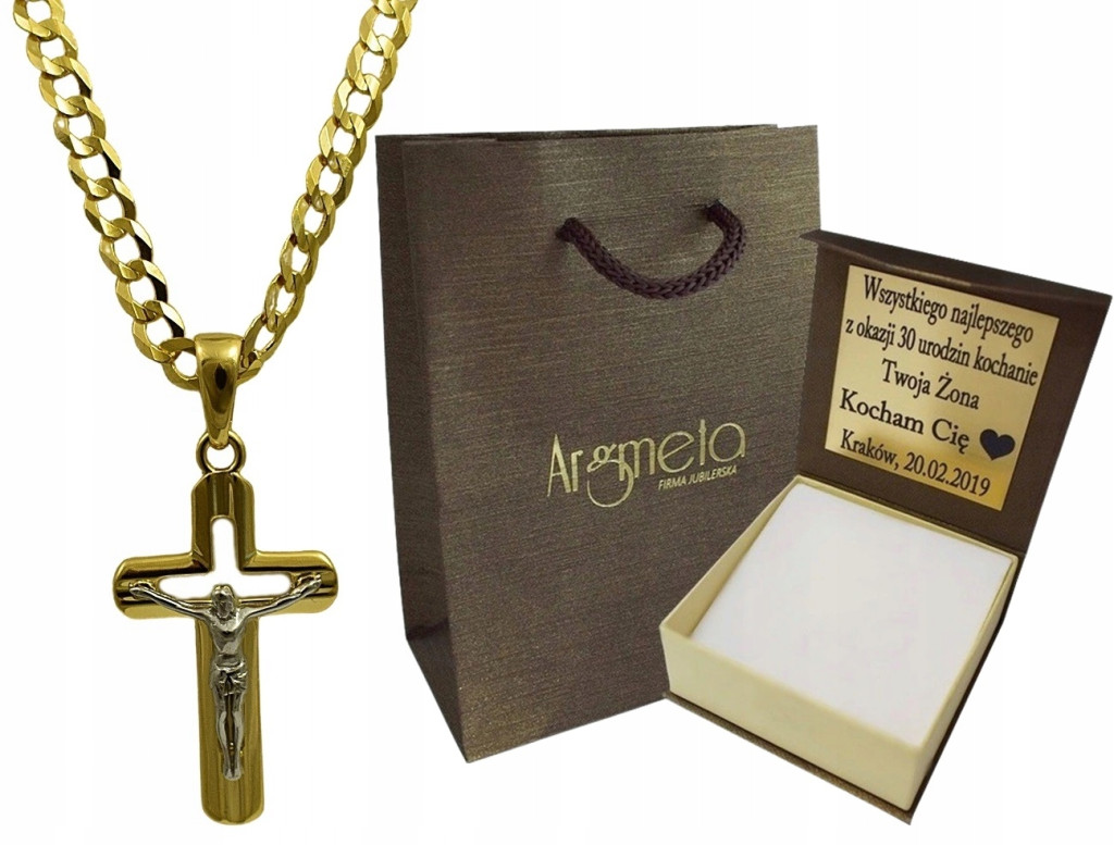 Złoty Łańcuszek Pancerka 3,30 mm Pełna z Krzyżykiem pr 585 Grawer Gratis