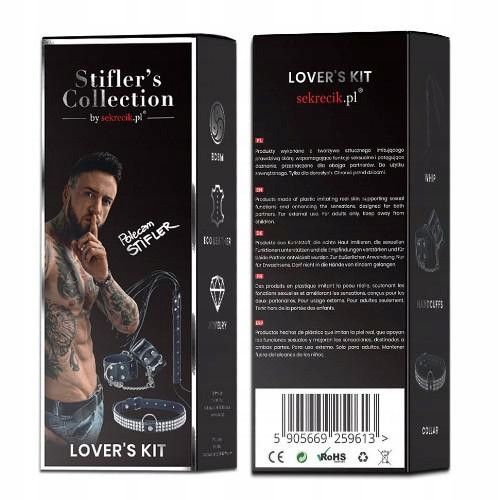 Ekskluzywna obroża: wykonana z ekologicznej i wytrzymałej skóry przyjemnej w dotyku i wygodnej w noszeniu, wysadzana srebrnymi kryształkami. Posiada ring, do którego można podpiąć smycz, dzięki której uzyskamy jeszcze większą kontrolę nad partnerką/partnerem.
