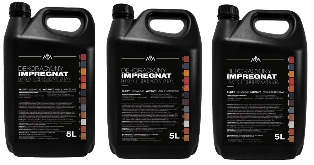 Przedmiotem sprzedaży jest wysokiej jakości Impregnat do drewna M&M 15l (3x5l) - do wyboru 12 kolorów - po zakupie proszę o informację o wybranym kolorze w wiadomości do sprzedającego