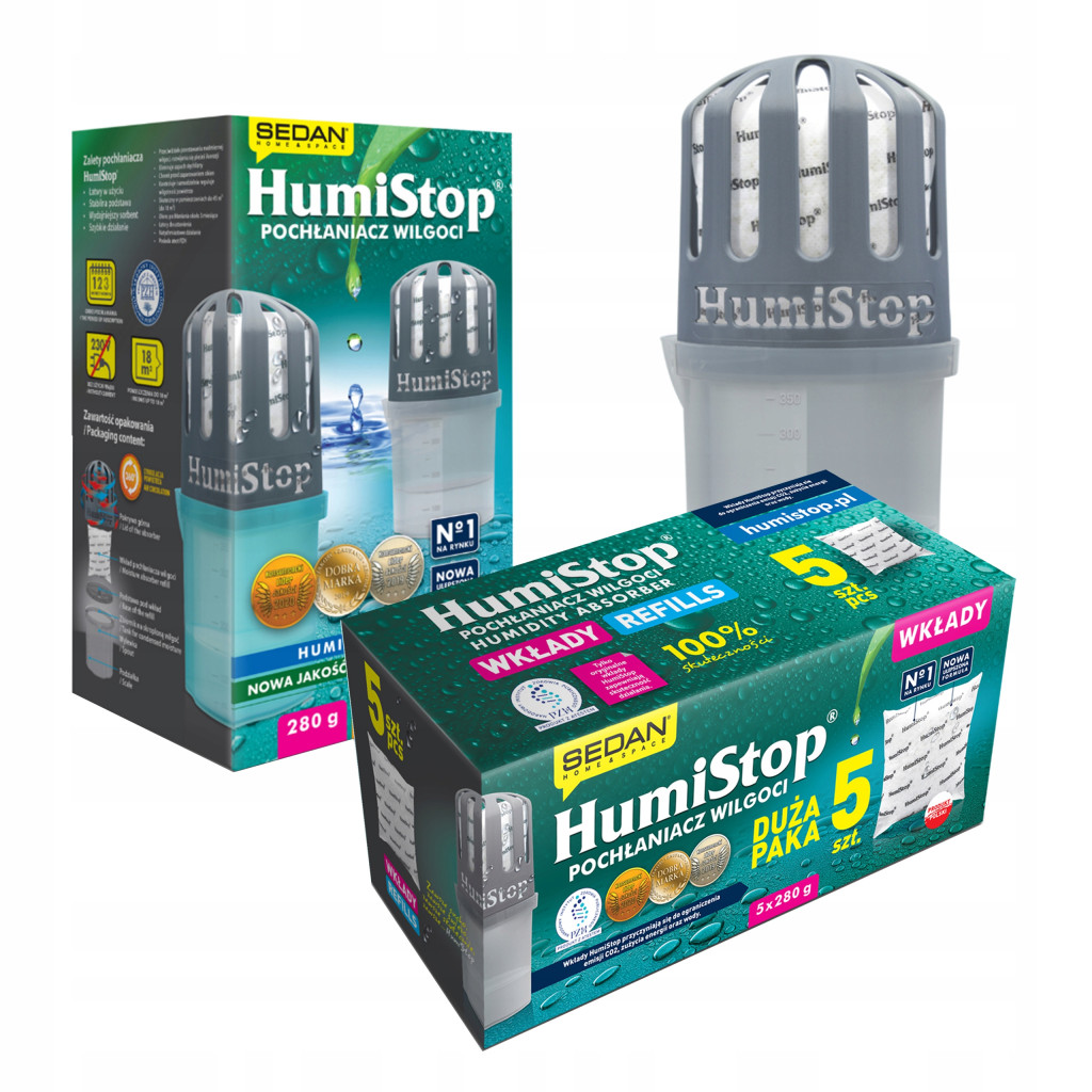 Zawsze sucho, zawsze świeżo, zawsze skutecznie, zawsze .... Humistop. Ważne aby dopasować model pochłaniacza do wielkości pomieszczenia. W ofercie znajdą Państwo pochłaniacze w różnej wersji kolorystycznej, zapachowej jak również przeznaczone na określoną powierzchnię pomieszczenia. Pochłaniacz standardowy HumiStop dedykowany jest na około 18 m2 natomiast wersja HumSitop MAXI zadba o zbieranie wilgoci z powierzchni do około 30 m2.
