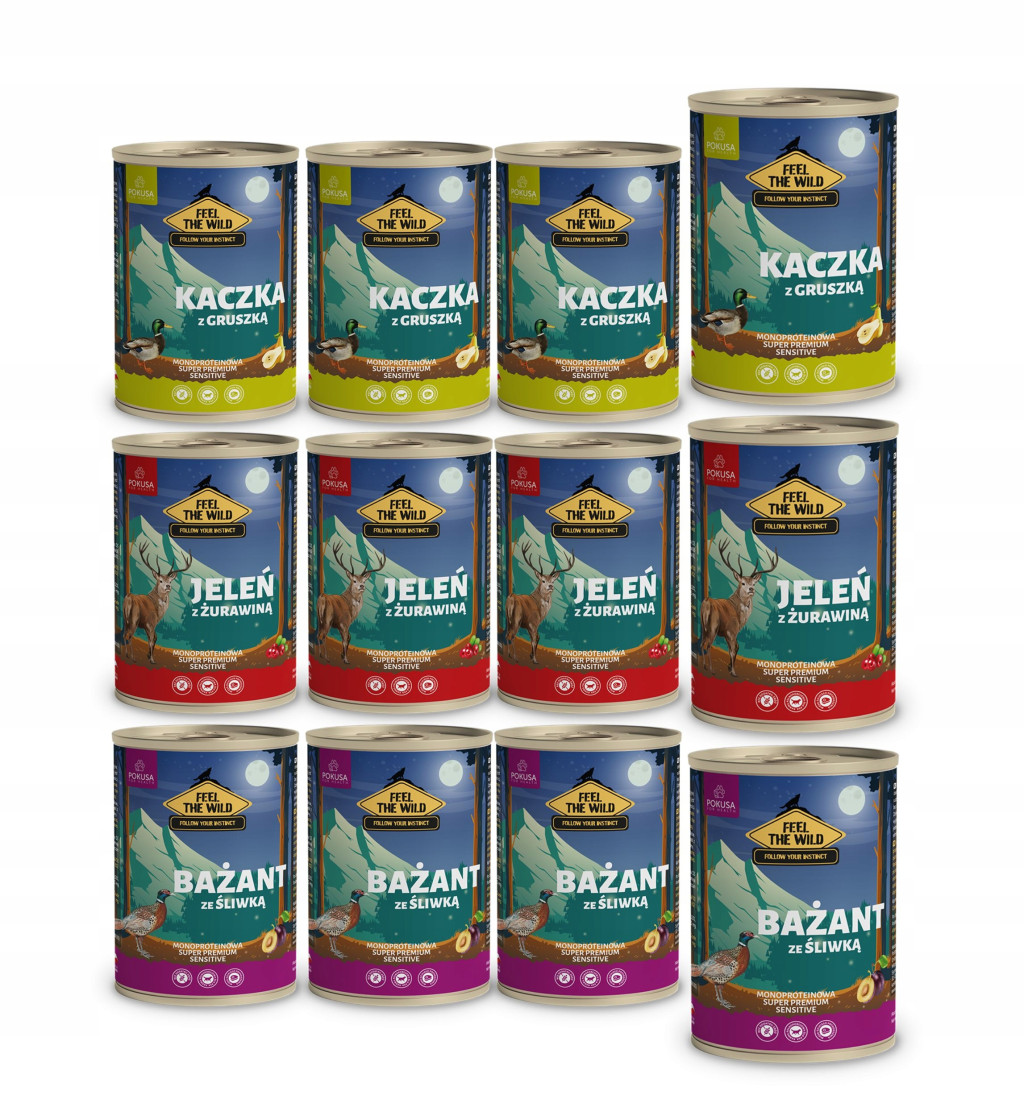 Feel The Wild - pełnoporcjowa karma mokra dla psów mix 12szt.
