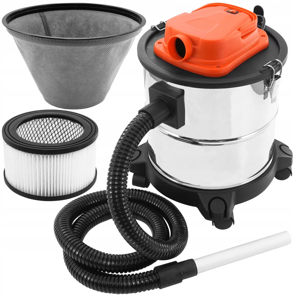 Odkurzacz kominkowy zasysa i magazynuje zimny popiół i pyły w 20 litrowym zbiorniku. Zanieczyszczenia są wychwytywane przez filtr HEPA. Urządzenie wyposażone jest w aluminiową rurkę do zaciągania pyłu, zbiornik, giętki wąż wykonany z bardzo trwałego materiału.