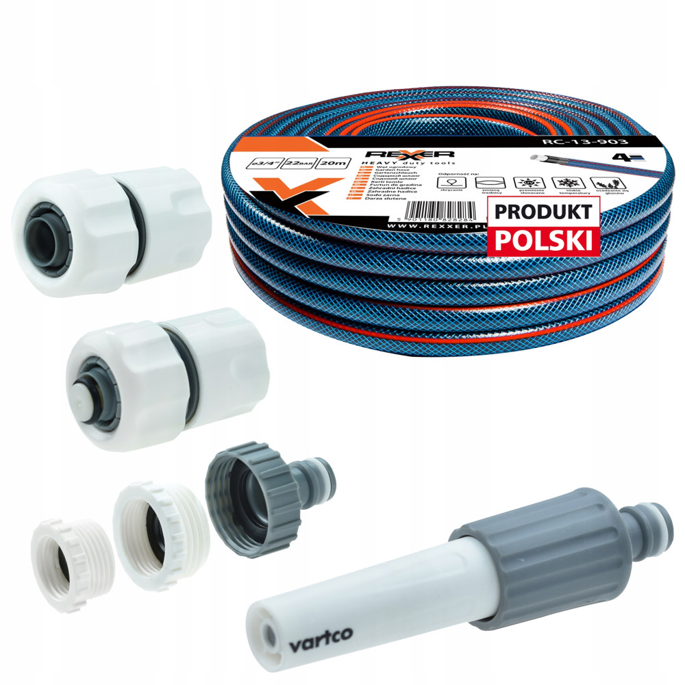 4-WARSTWOWY WĄŻ OGRODOWY 3/4" 20 M + ZŁĄCZKI + DYSZA ZRASZAJĄCA