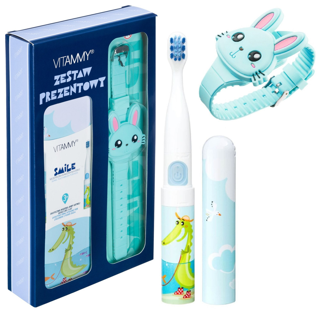Zestaw prezentowy szczoteczka soniczna i zegarek VITAMMY SMILE krokodyl + VITAMMY SMILE WATCH niebieski