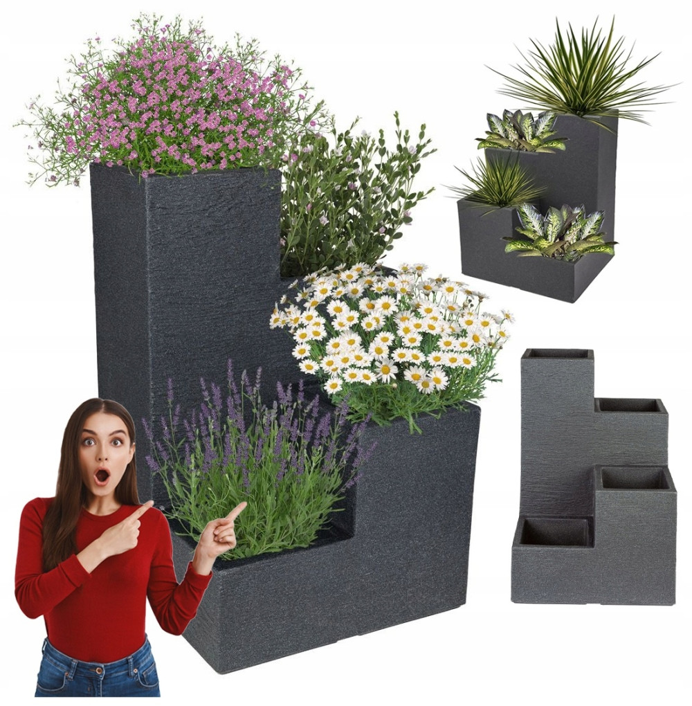 ✔️ CZTERY WARIANTY- Doniczko - kwietnik ma aż cztery  poziomy inaczej nazywany kaskadą, jego wysokości to  14,5 cm, 30 cm, 44,5 cm i 59 cm.