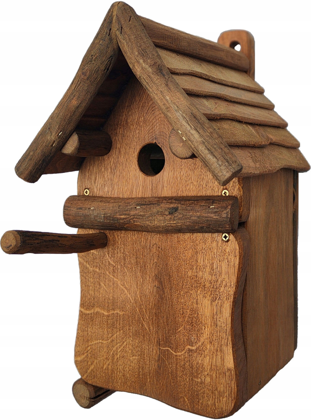 • kolor: brąz (budka jest zaimpregnowana z zewnątrz; w środku staramy się nie malować zachowując dla ptaków naturalne wnętrze)