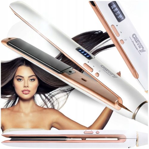 ❇️ Innowacyjna prostownica do włosów Camry łączy szybkie nagrzewanie, regulację temperatury od 150°C do 230°C i ceramiczno-turmalinową powłokę, eliminującą elektryzowanie się włosów. Wyposażona w ruchome płytki o wymiarach 11x2,5cm, gwarantuje efektywną stylizację.