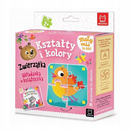 AKSJOMAT Kształty i kolory. Zwierzątka. Układanka + książeczka. Mały miś to lubi! 0-3.