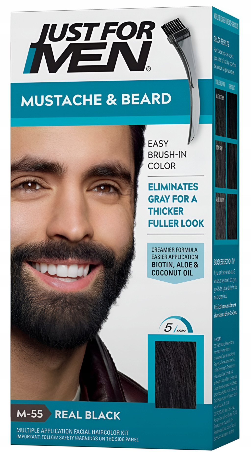 Farba do brody Just For Men w kolorze głęboka czerń bierze na cel TYLKO siwe włosy!