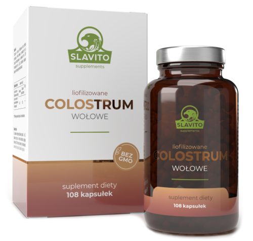 Colostrum Bovinum zawiera pierwsze krowie mleko (siarę). Dostarcza immunoglobulin (aktywnych przeciwciał) oraz peptydów, które wspomagają organizm, utrzymanie oraz rozwój naturalnych mechanizmów obronnych. Suplement diety wspomaga regenerację błony śluzowej jelit oraz pozytywnie wpływa na utrzymanie sił witalnych i funkcji poznawczych. Dodatkowo korzystnie wpływa na pielęgnację skóry oraz wspiera odporność na działanie stresu. Zawarte w produkcie białko (peptydy), wspomaga wzrost i funkcjonowanie mięśni, a także wspomaga utrzymanie kości.