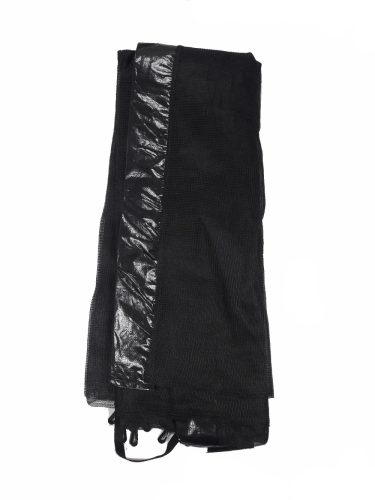 Polecam nową siatkę ochronną zewnętrzną do trampoliny o średnicy 427 do 434 cm (14 Ft - stóp), z 4 podwójnymi nogami, na 8 masztów - jak na zdjęciach poniżej. Wysokość całej siatki: 183cm. Tunele na słupki są odpowiednio krótsze - około 15 cm. Wykonana jest z polietylenowych żyłek (takich, jak wędkarskie), dzięki czemu jest bardzo trwała - najlepsza na rynku. Nie bleknie i nie kruszy się nawet po latach. Oczka są bardzo gęste, gramatura zwiększona do 105g/m.kw.(to jest autentyczna waga - nie zawyżona, jak u niektórych sprzedawców). Siatka przechodzi na zewnątrz ramy i jest przyczepiana od  dołu haczykami (na gumach) do trójkątów przy macie trampoliny. Mocny zamek błyskawiczny zabezpieczony jest dodatkowo klamrą u dołu. Istotne jest, że ta siatka nie jest wiązana do słupków, a nakładana na nie specjalnymi pokrowcami. Dzięki temu cała powierzchnia trampoliny jest wykorzystana, a pianka na słupkach zabezpieczona przed zniszczeniem.