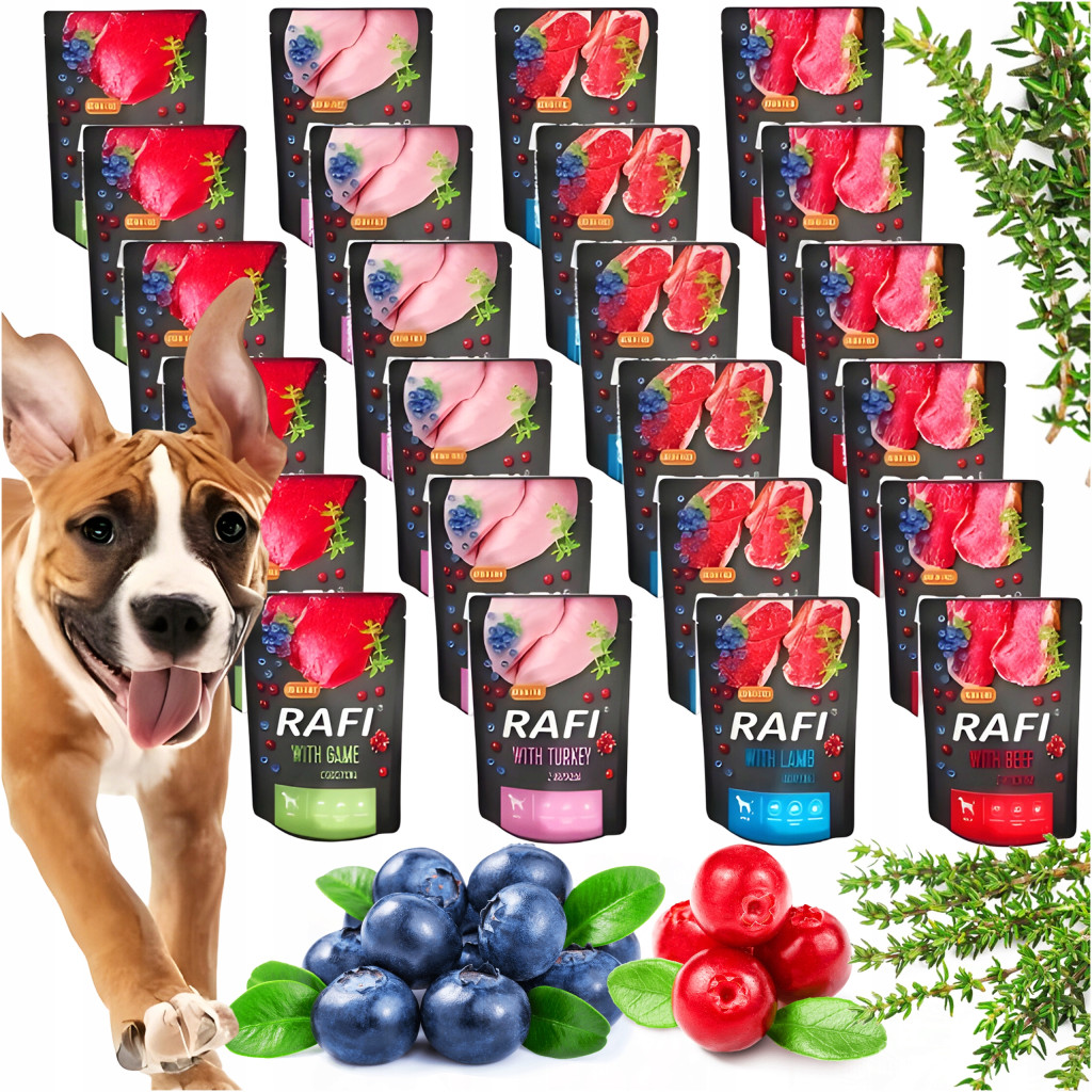 ⭐Mokra Karma dla Psa Rafi Dolina Noteci saszetki mix 300 g zestaw 24 sztuki⭐