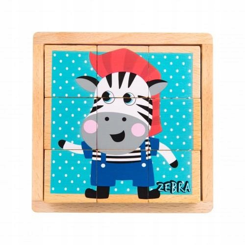 Każdy klocek posiada 6 stron i można ułożyć 6 różnych obrazków.