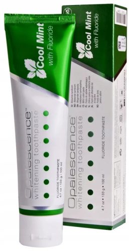 Pasta do zębów Opalescence zapobiega próchnicy i usuwa osad nazębny, ma podwyższoną zawartość fluoru (1100 ppm). Obniża ścieralność, zapobiega niszczeniu powierzchni szkliwa i wypełnień. Pasta posiada lekkie działanie wybielające.