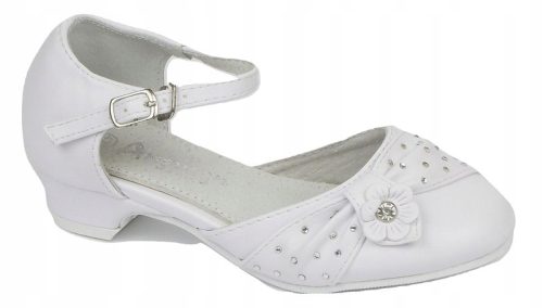 Wizytowy model białych półbutów dziewczęcych - pantofelki - idealne na uroczystości i komunię.