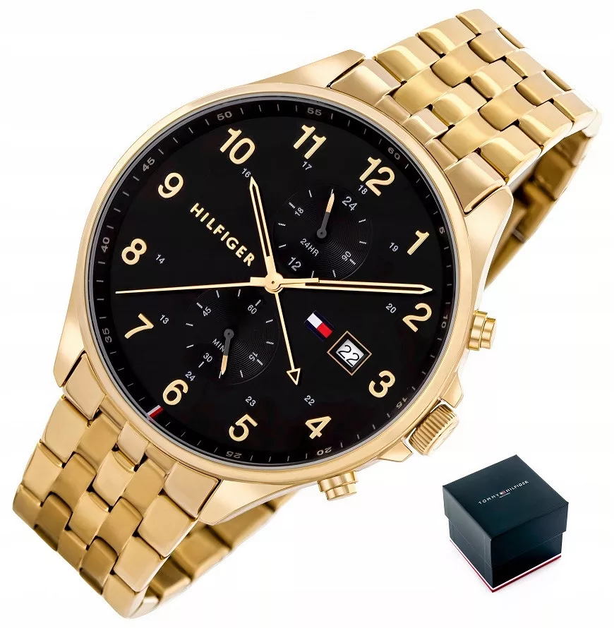 ZEGAREK MĘSKI TOMMY HILFIGER 1791708 WEST +BOX +GRAWER złoty chronograf