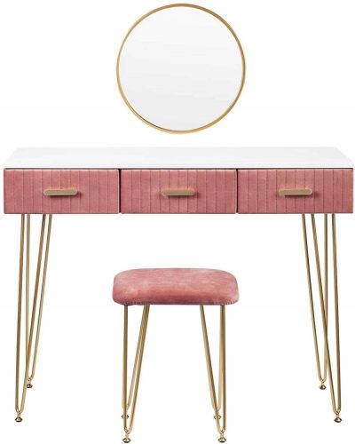 Toeletta moderna per camera da letto con sgabello rosa