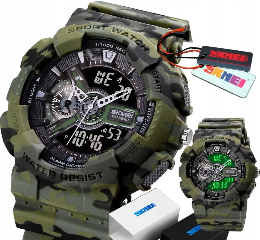 SKMEI to jeden z największych koncernów produkujących szeroką gamę zegarków w zaawansowanych technologicznie fabrykach w oparciu o innowacyjne rozwiązania oraz najnowsze zdobycze naukowe. Produkty te charakteryzuje niesłychana wręcz precyzja wykonania - każdy pojedynczy element to prawdziwe arcydzieło !!! Spasowanie elementów oraz wykończenie są bardzo solidne, a całość wygląda imponująco!
