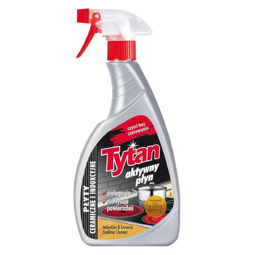 Płyn do czyszczenia płyt ceramicznych Tytan z łatwością czyści i usuwa przypalenia powstałe na powierzchniach ceramicznych płyt kuchennych, rusztów patelni, rondli, grilli, szyb kominkowych, naczyń emaliowanych, ceramicznych, żaroodpornych i ze stali szlachetnej oraz w piekarnikach i w kuchniach mikrofalowych. Produkt jest środkiem wysoce specjalistycznym, dzięki odpowiednie dobranej kompozycji składników.