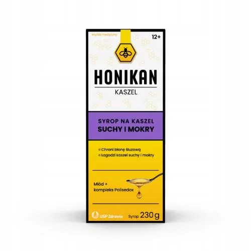 HONIKAN KASZEL SYROP NA KASZEL SUCHY I MOKRY Leczenie suchego, jak i produktywnego kaszlu u dorosłych i dzieci w wieku od 12 lat. Chroni błonę śluzową, łagodzi kaszel suchy i mokry.