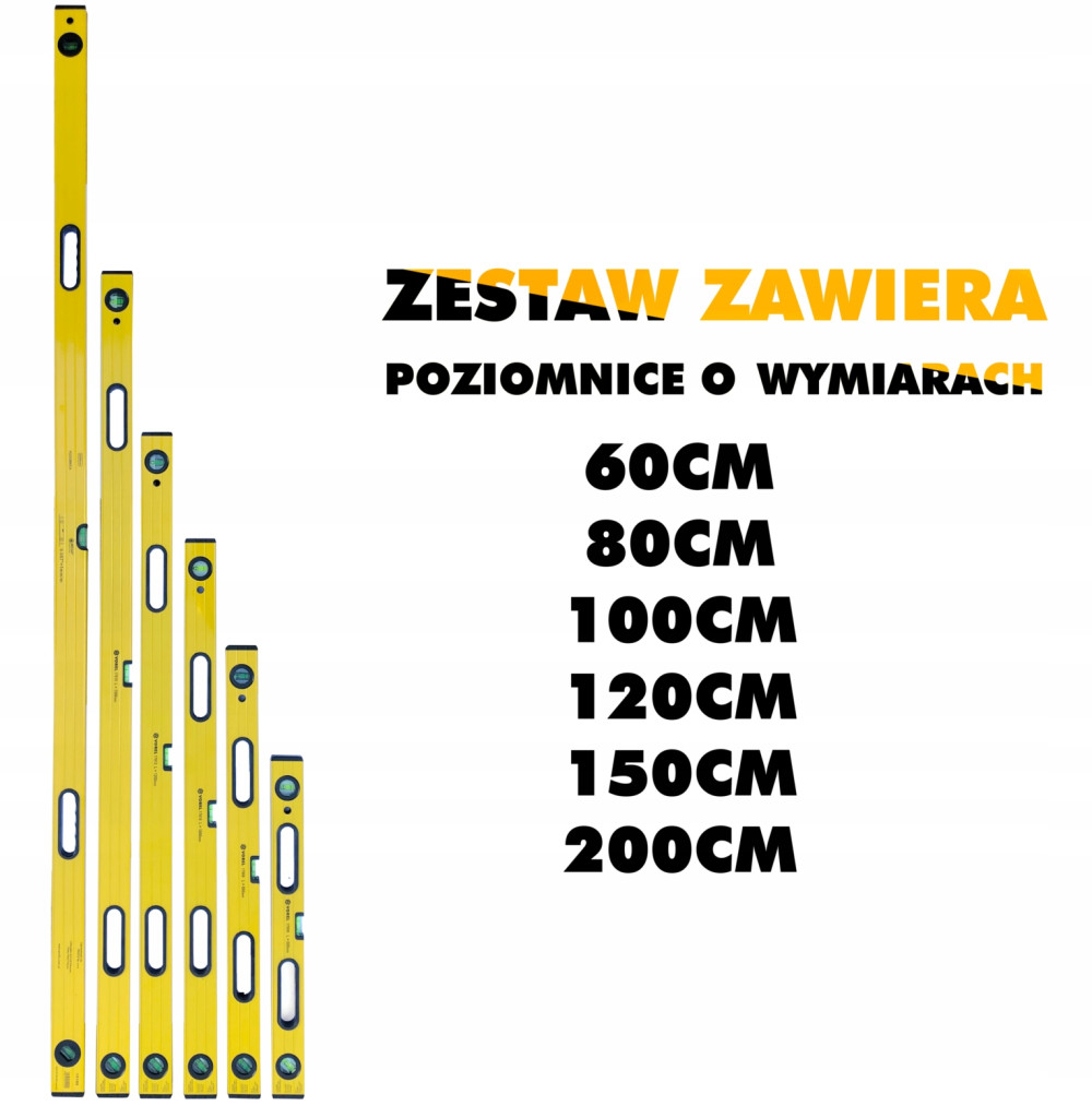 Zestaw Poziomnic ALU z uchwytami 6 szt 60-200 mm