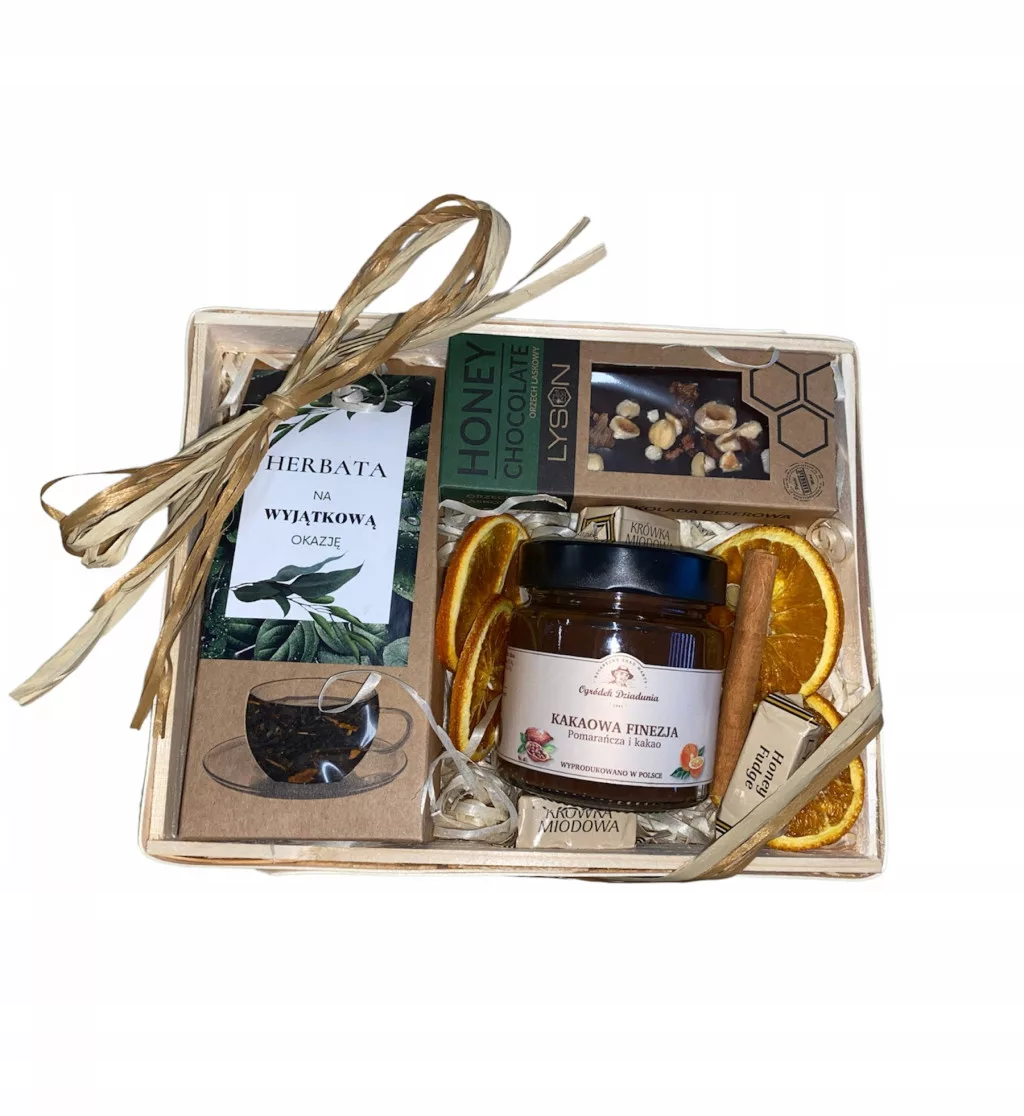 Kosz prezentowy zachwyci każdą obdarowaną osobę. Dobraliśmy produkty tak, aby trafiły w gust każdej obdarowanej osoby. Prezent nie musi być nudny! Dlatego włożyliśmy do pudełka niebanalne produkty, które swoją kompozycją tworzą prezent idealny.