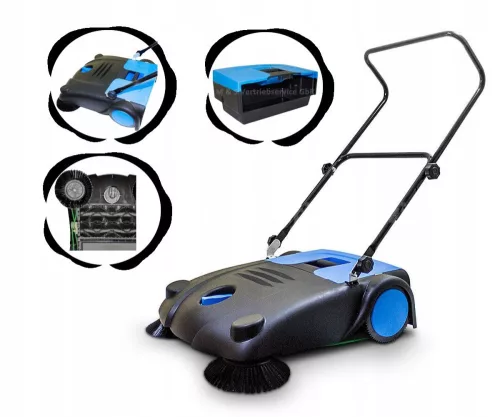 Zamiatarka ręczna o szerokości 70 cm. Umożliwia precyzyjne sprzątanie chodników, podjazdów, parkingów, ścieżek nawet do 7 razy szybciej, niż przy wykorzystaniu tradycyjnych metod sprzątania. Dzięki naszemu urządzeniu z zamiataniem uporasz się w mgnieniu oka. Posiada pojemnik na nieczystości, który mieści aż 20l. Wszystkie nieczystości są dokładnie zbierane przez nasze urządzenie. Szczotki boczne umożliwiają sprzątanie rozległych powierzchni oraz dotarcie do krawędzi i narożników.