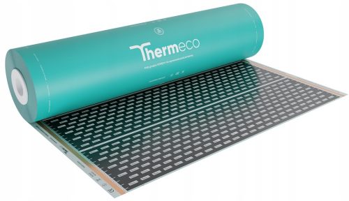 Folia grzewcza na podczerwień Thermeco PREMIUM to nowoczesne, innowacyjne i ekologiczne ogrzewanie podłogowe. Moc folii grzewczej wynosi 150W/m², przeznaczona jest do pracy w pomieszczeniach suchych z podłogą w postaci paneli podłogowych, laminatu, linoleum lub wykładzin. Folię układa się na tak zwanej "wolnej powierzchni", należy zatem odliczyć stałą zabudowę.