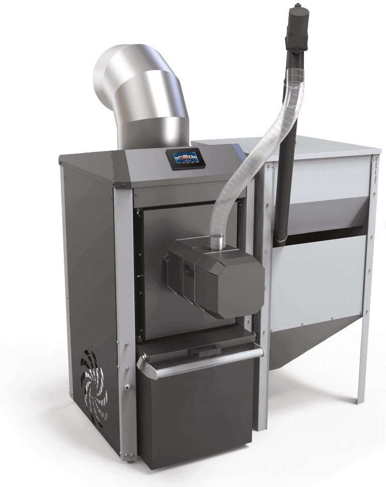 Nagrzewnica ponadto wykorzystuje niezawodny system automatycznego odpopielania. Popiół gromadzi się w specjalnym zbiorniku, do którego użytkownik ma łatwy dostęp. Dzięki połączeniu samoczyszczącego palnika ROTARY oraz mechanizmu automatycznego odpopielania komory paleniskowej, znacząco wydłużono czas bezobsługowej pracy urządzenia.
